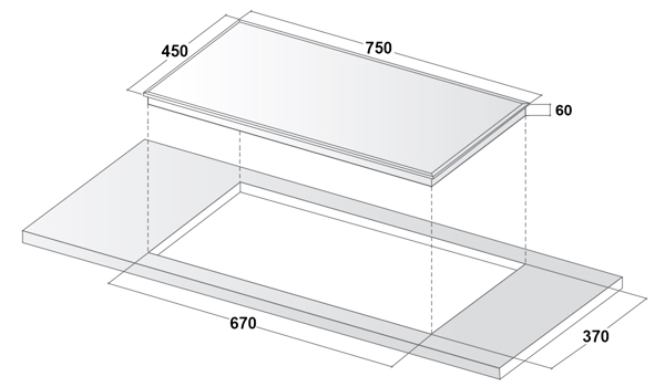 Kích thước khoét đá | 680 x 410mm |