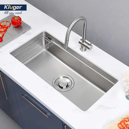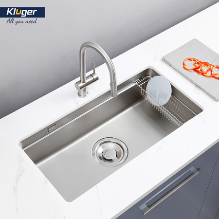 Kluger KU8844FS Basic được thiết kế 1 hố lớn lắp âm với đường nét tối giản, gọn gàng, tạo nên sự liền mạch và sang trọng cho bàn bếp. Kiểu dáng rộng rãi, độ sâu 220mm giúp dễ dàng rửa các loại xoong nồi cỡ lớn mà vẫn thoải mái trong thao tác.