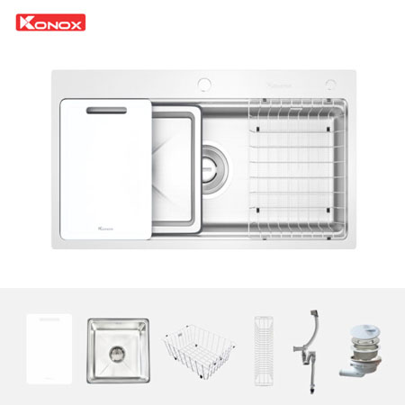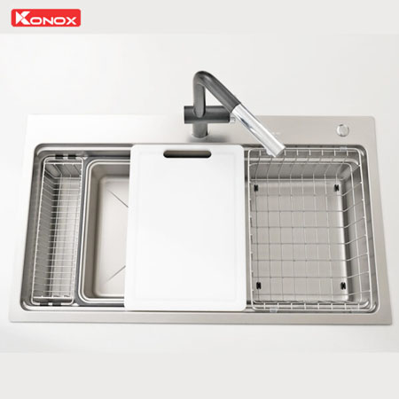 Chậu rửa bát Konox KN8751TS Dekor – Workstation chống xước, tối ưu trải nghiệm bếp hiện đại