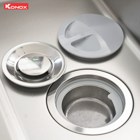 Konox KN8751TS Dekor được trang bị bát rác kích thước lớn 185mm với 3 lớp lọc chống tắc, phù hợp với thói quen sử dụng của gia đình Việt.