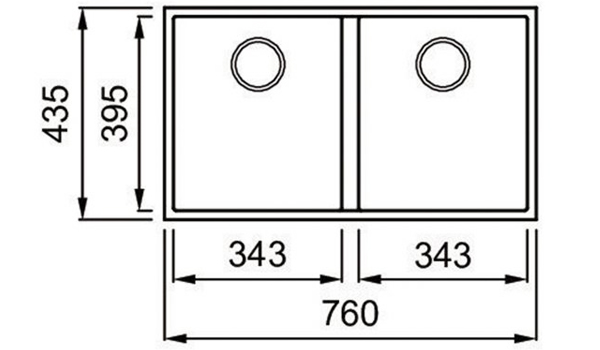 Kích thước hố chậu phải 343 x 395mm