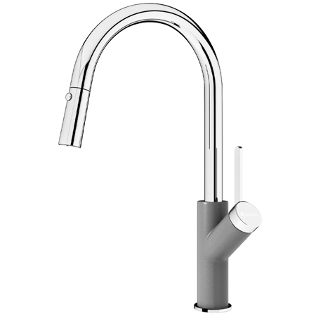 Ponte Grey sở hữu thân vòi bo tròn mềm mại, đầu vòi cong thanh thoát, tạo nên dáng vẻ hiện đại và hài hòa với nhiều phong cách bếp khác nhau.